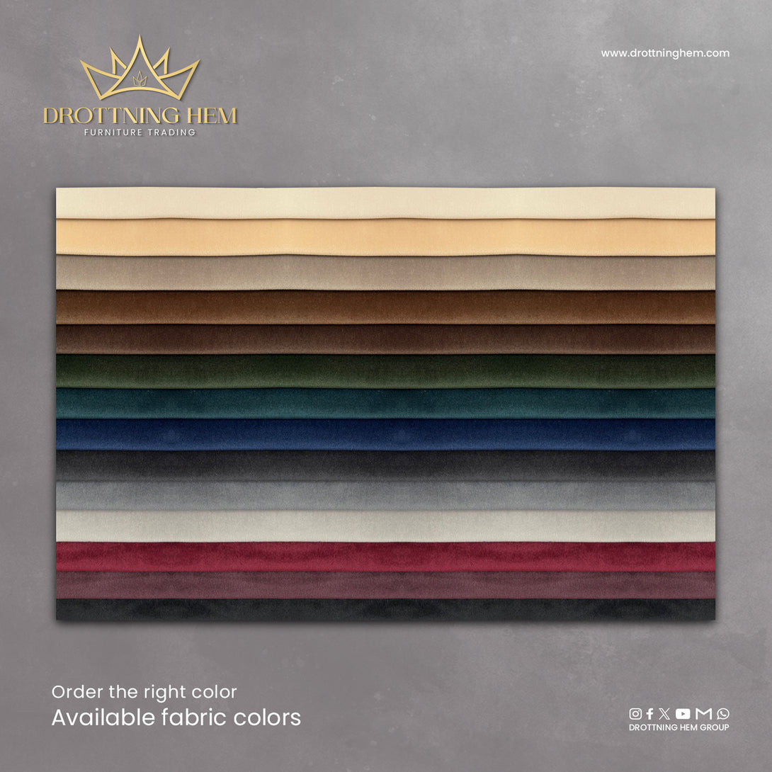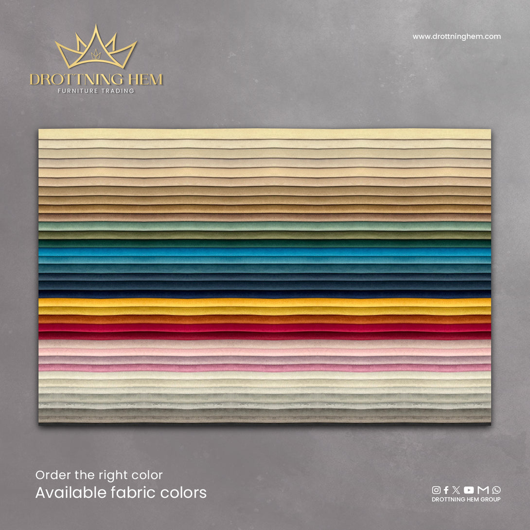 Tillgängliga tygfärger visas i den sista produktbilden.
